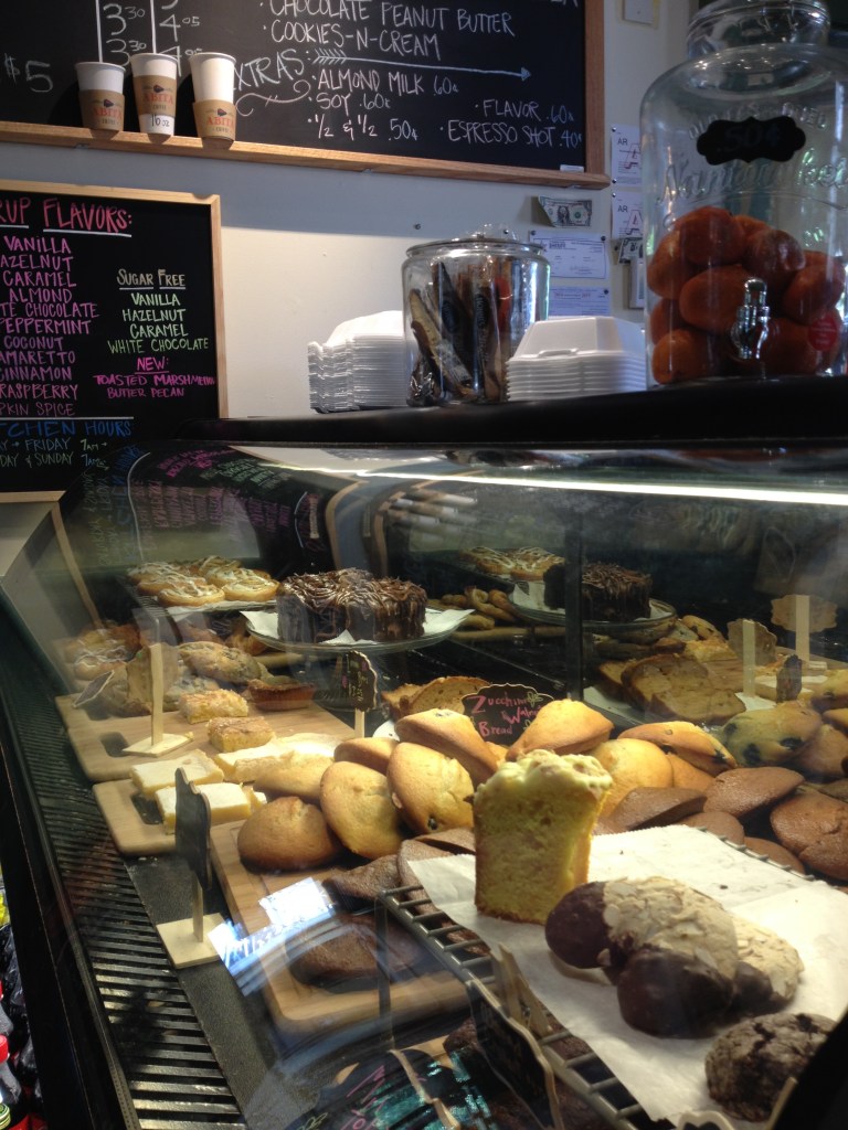 They have a nice little selection of merch, too. I really like the heavy-set, ceramic mugs. And there’s a variety of packaged coffee if you want to take some home with you.